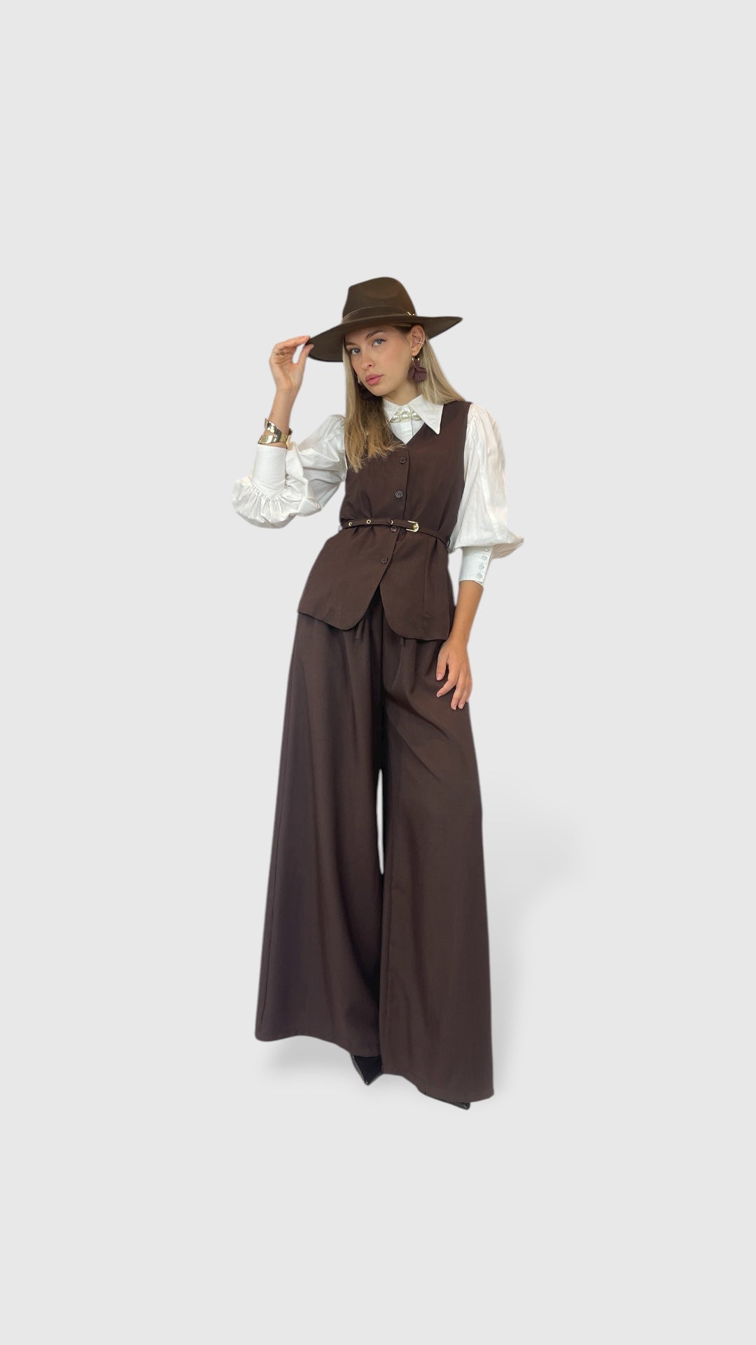 Coordinato elegante con gilet e pantaloni palazzo