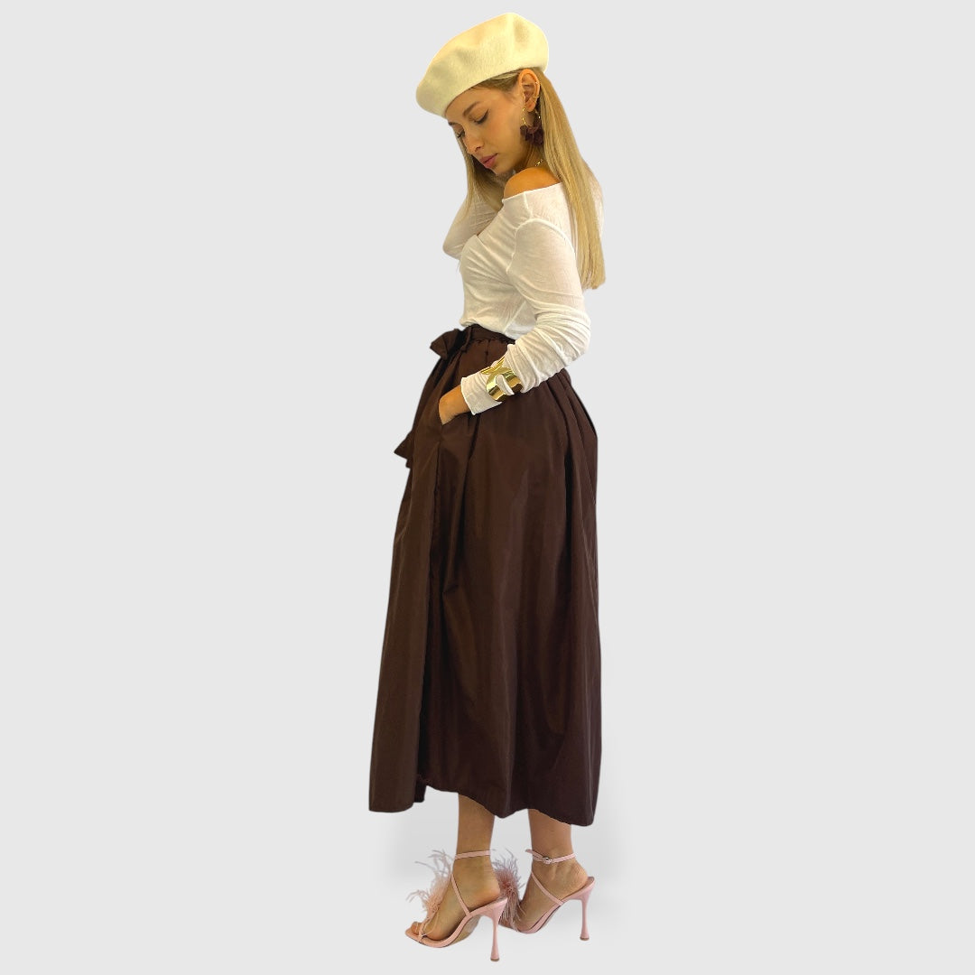 Maglietta a maniche lunghe realizzata in morbida viscosa con un tocco di cashmere per una sensazione di comfort e leggerezza sulla pelle. Disponibile nei classici colori bianco e nero, è un capo versatile e raffinato, perfetto per ogni occasione. La taglia unica veste comodamente dalla S alla XXL, adattandosi con naturalezza a diverse fisicità senza rinunciare a stile ed eleganza.
